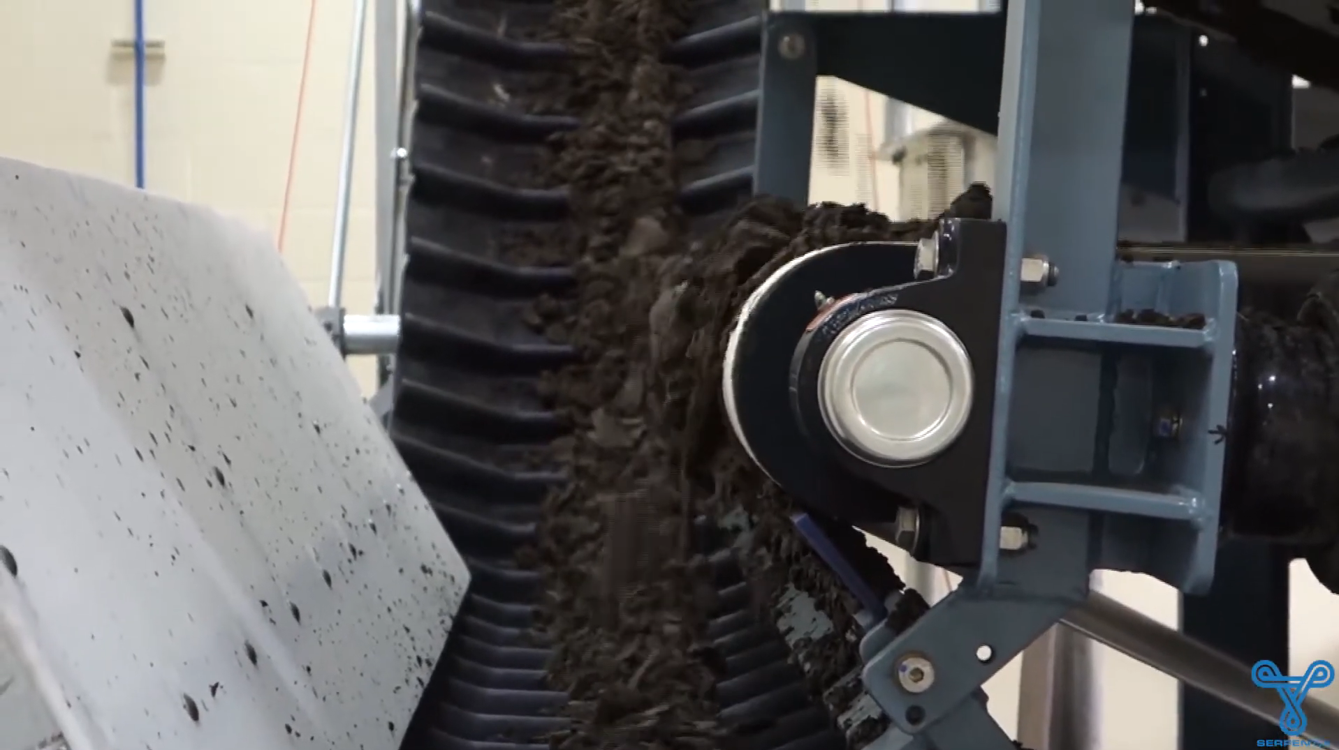 Flights mounted to the belt distribute sludge evenly and scrape buildup off surfaces